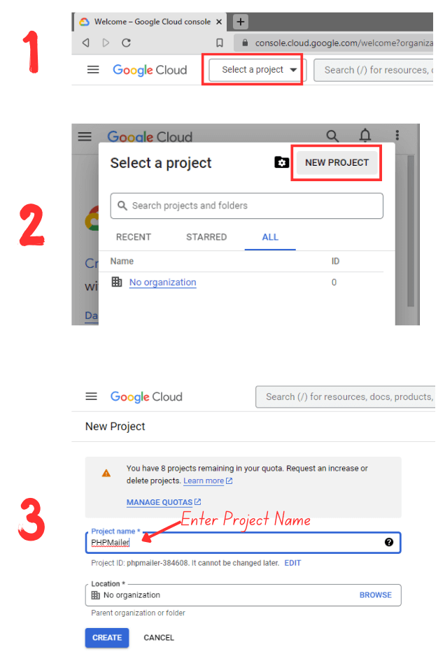 - Create a New ProjectAfter login to your account, Go to Select a project » New Project » create a new project.